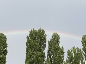 Ganz zart erscheint er über den Bäumen.