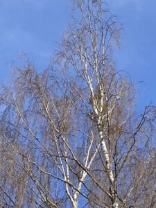 Der blaue Himmel lässt die Birke erstrahlen.